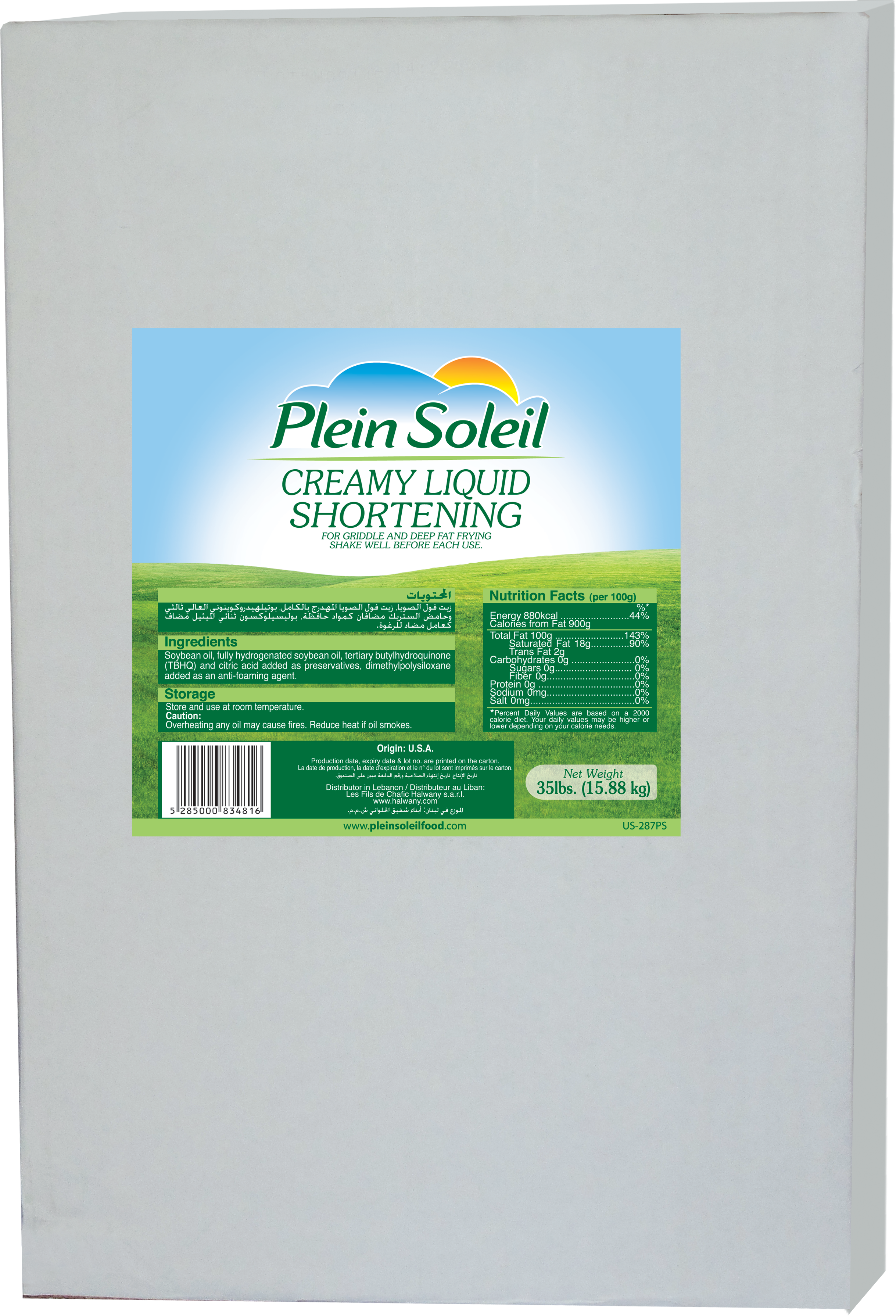 Plein Soleil's Creamy Liqui Shortening is great for pie crusts, cookies, biscuits, pan frying and deep frying.